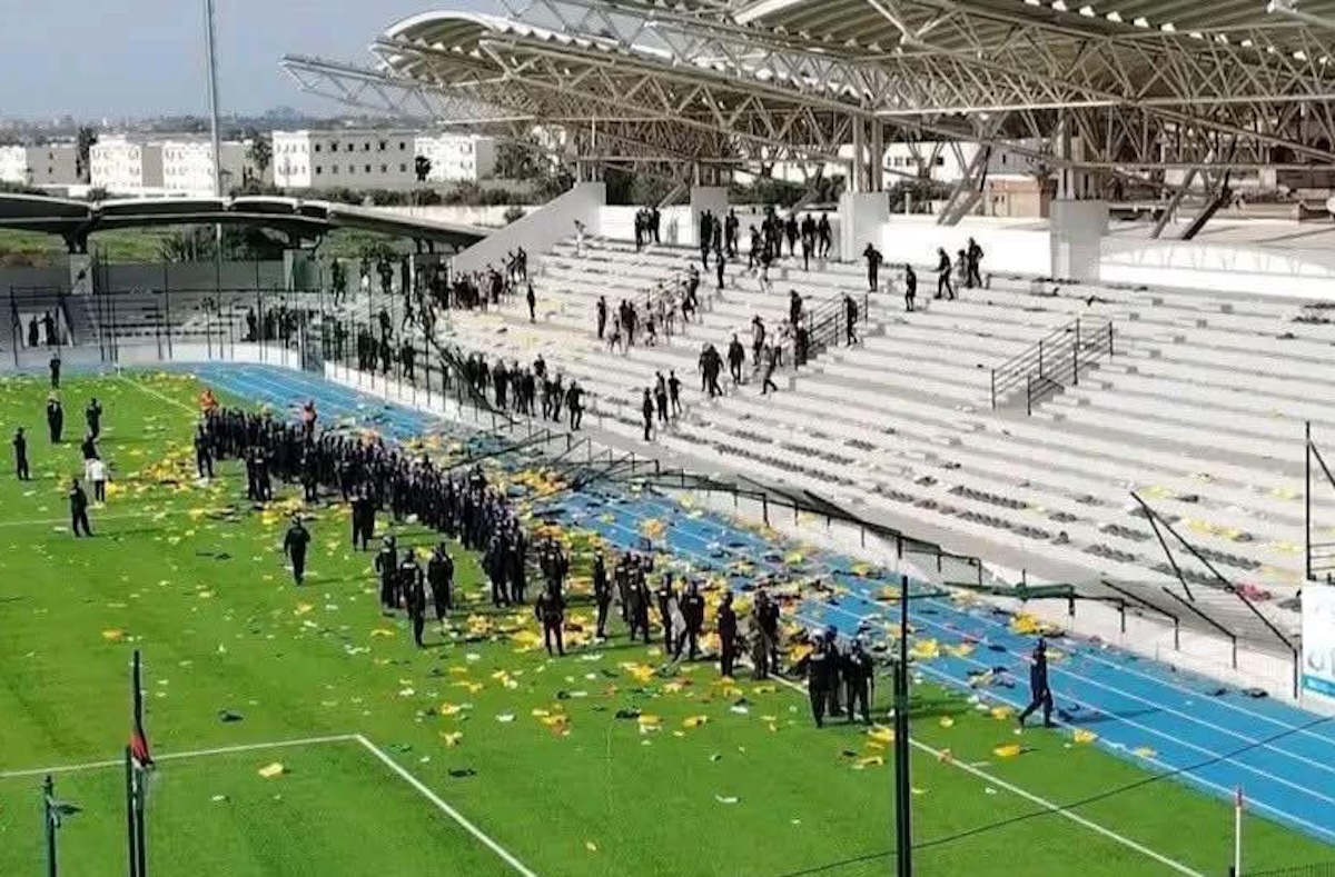 À la suite du deuxième but oranais, inscrit en seconde période, la tension déjà palpable dans les tribunes a rapidement basculé dans des débordements graves. Une partie des supporters harrachis a exprimé sa colère de manière violente, donnant lieu à des actes de vandalisme dans les gradins du stade.  Les dégradations ont été importantes, avec des sièges arrachés et détruits, tandis que des projectiles et des feux d’artifice ont été lancés en direction de la pelouse.